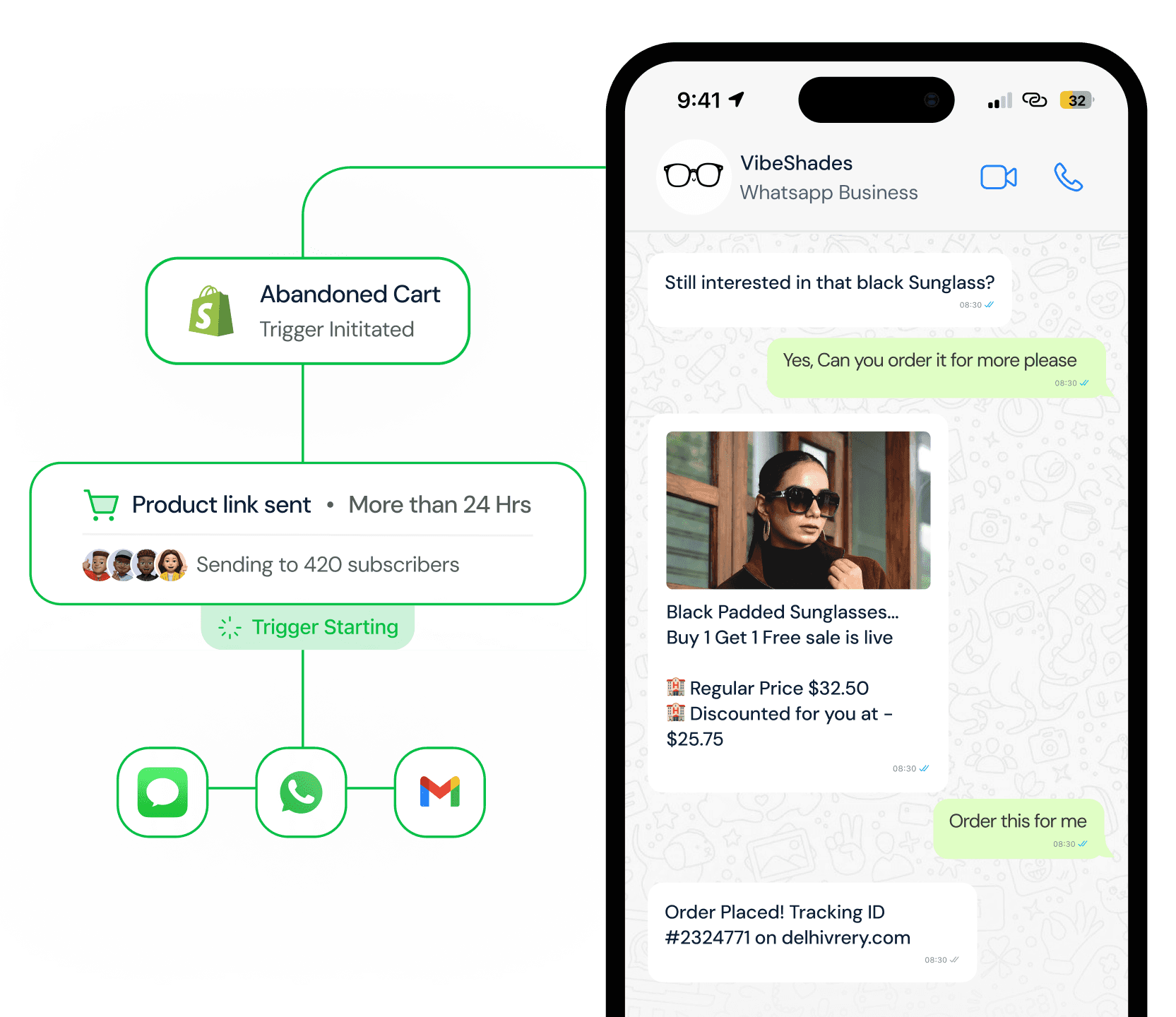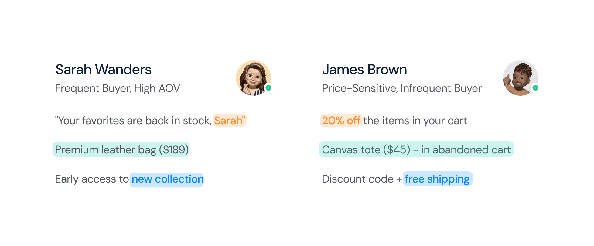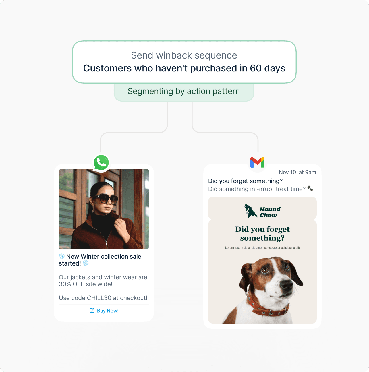 Orders, conversations, and behavior unified in real time—so every message hits at the right moment.