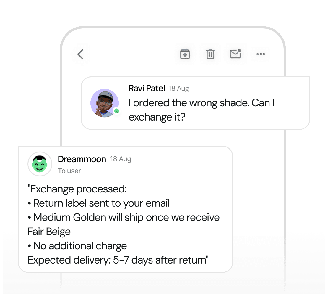 Sagepilot handles order issues, returns, troubleshooting, and FAQs with precision and empathy. Customers receive fast and complete answers without waiting in a queue.