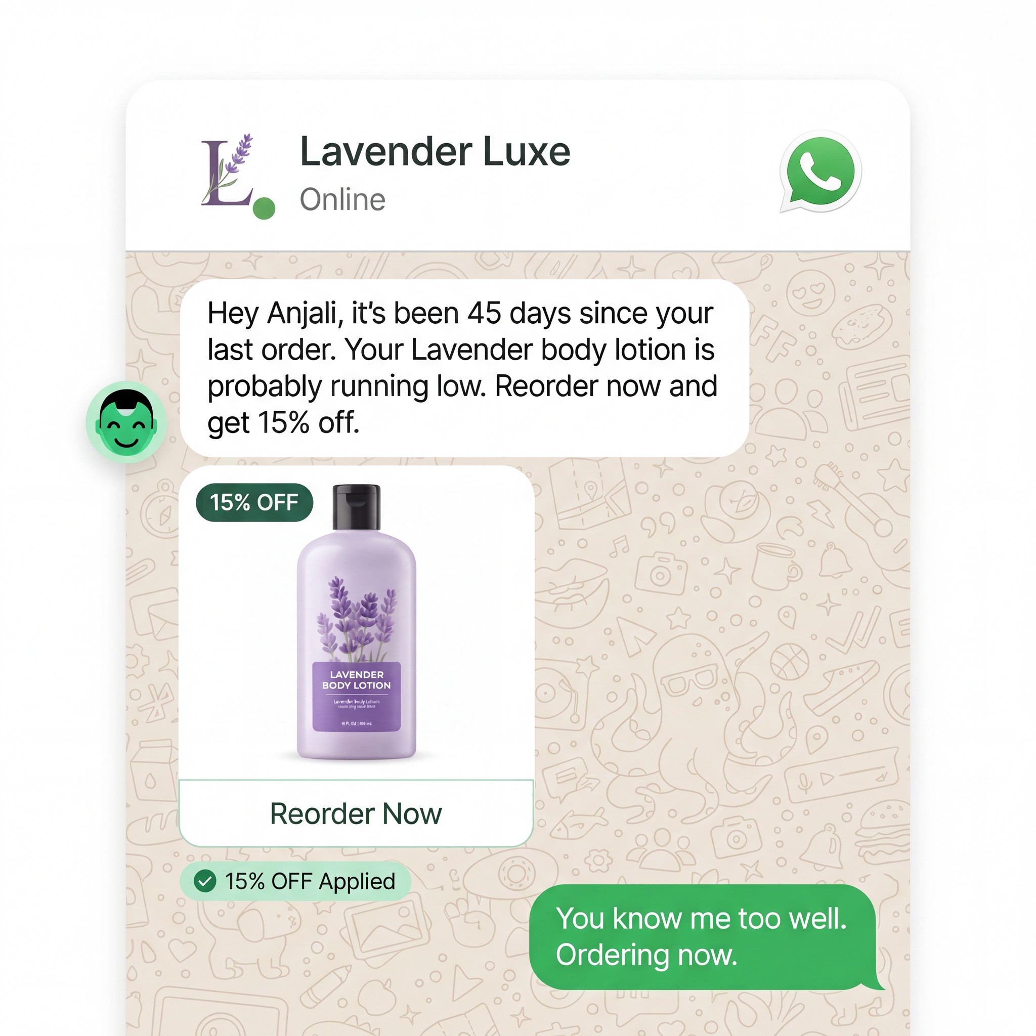 Remembers every conversation, every order, every preference. Customers never repeat themselves.