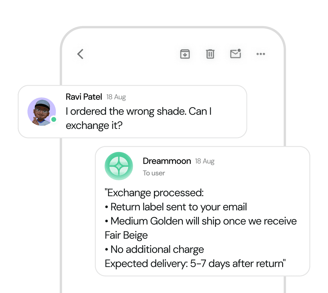One inbox for all your customer touch-points. Your AI employee answers instantly, takes action when allowed, and hands off safely when needed.