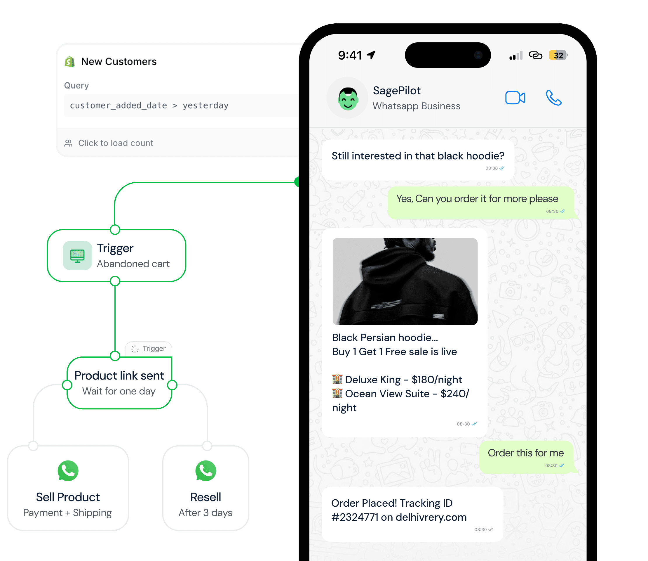 Move beyond static lists. The AI detects buying signals—like pricing views or cart drops—and triggers the recovery flow instantly.